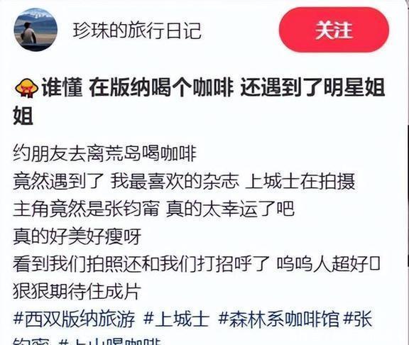 11号,有好几个网友在论坛上发帖,说在西双版纳的街头碰见了张钧甯,还说她正忙着拍杂志呢。